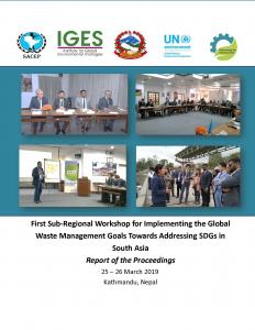 This report provides a summery of discussion at the First Sub-Regional Workshop on Preparation of Status Report and Sub-regional Road map for implementing the Global Waste Management Goals toward Addressing SDGs in South Asia organized 25-26 March 2019 in Kathmandu, Nepal, where the state of waste management in the sub-region was discussed, implementation gaps identified, and potential area of cooperation explored.