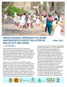 WHOLE SCHOOL APPROACH TO LEARN AND EDUCATE PLASTIC POLLUTION IN GALLE CITY, SRI LANKA